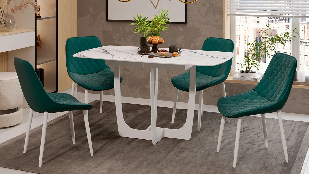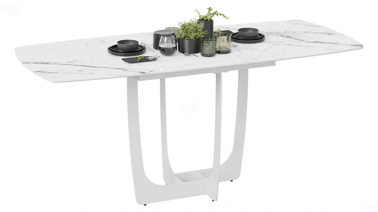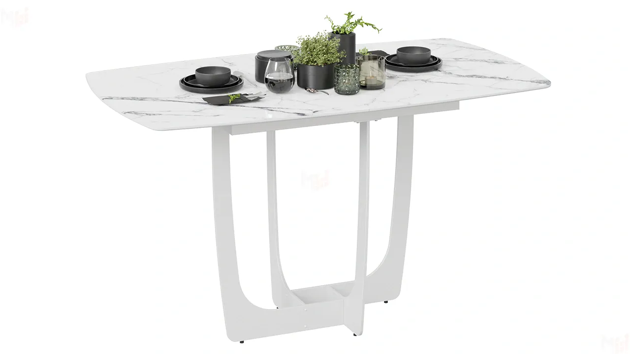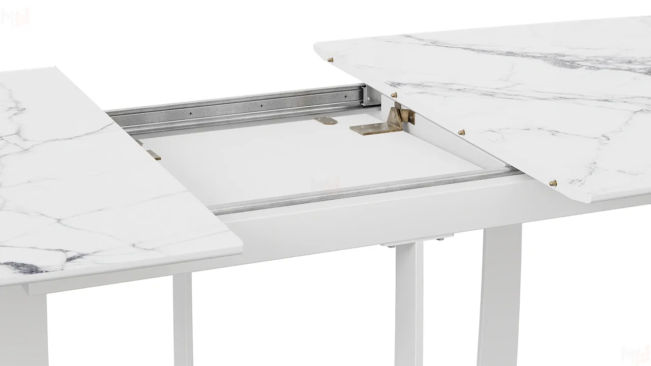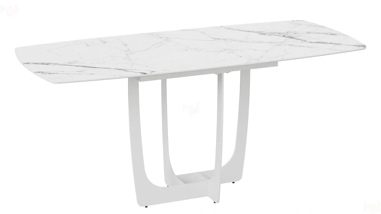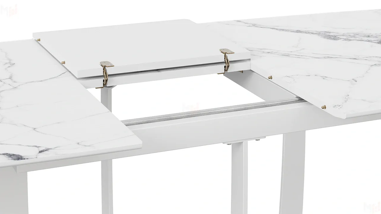 Стол обеденный Орфей Белый муар, Стекло глянцевое белый мрамор