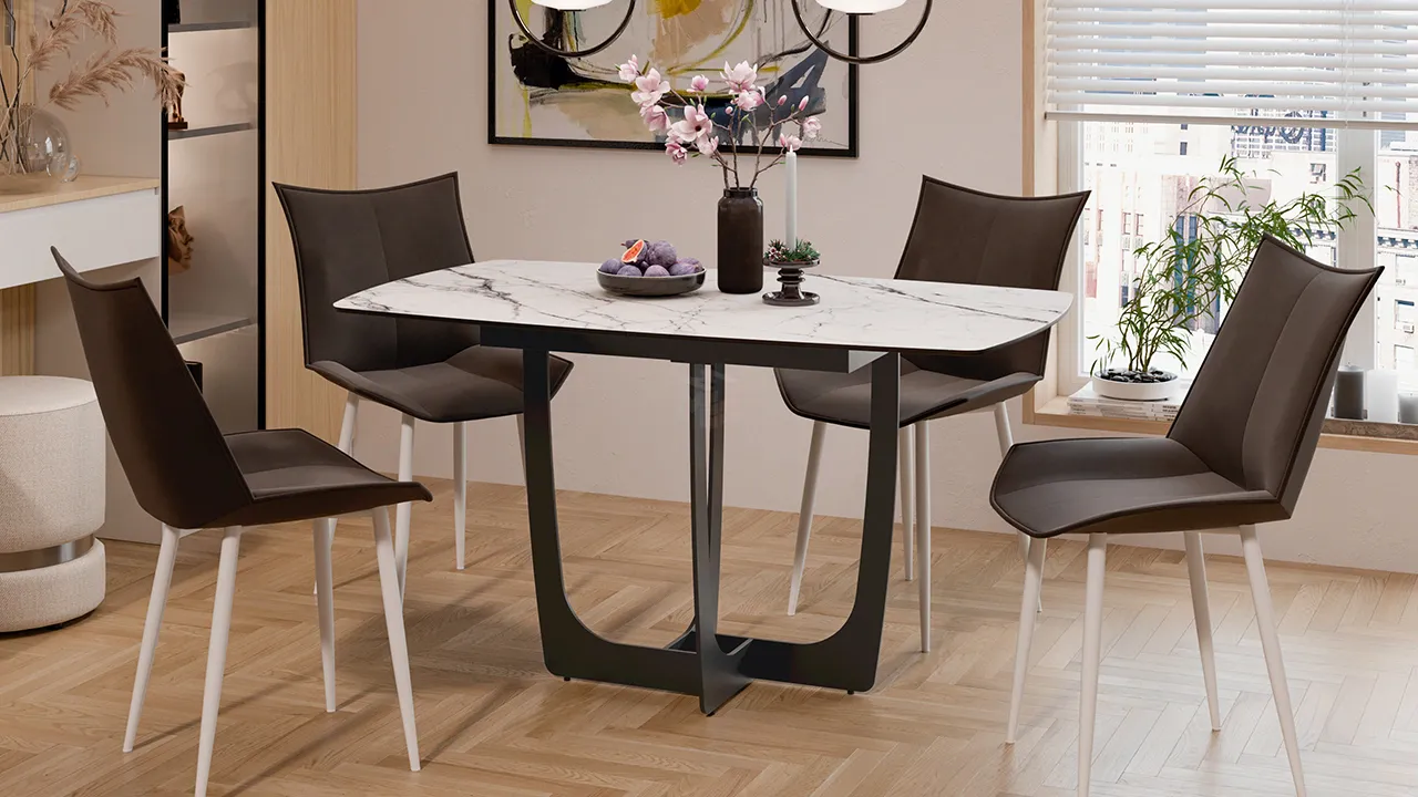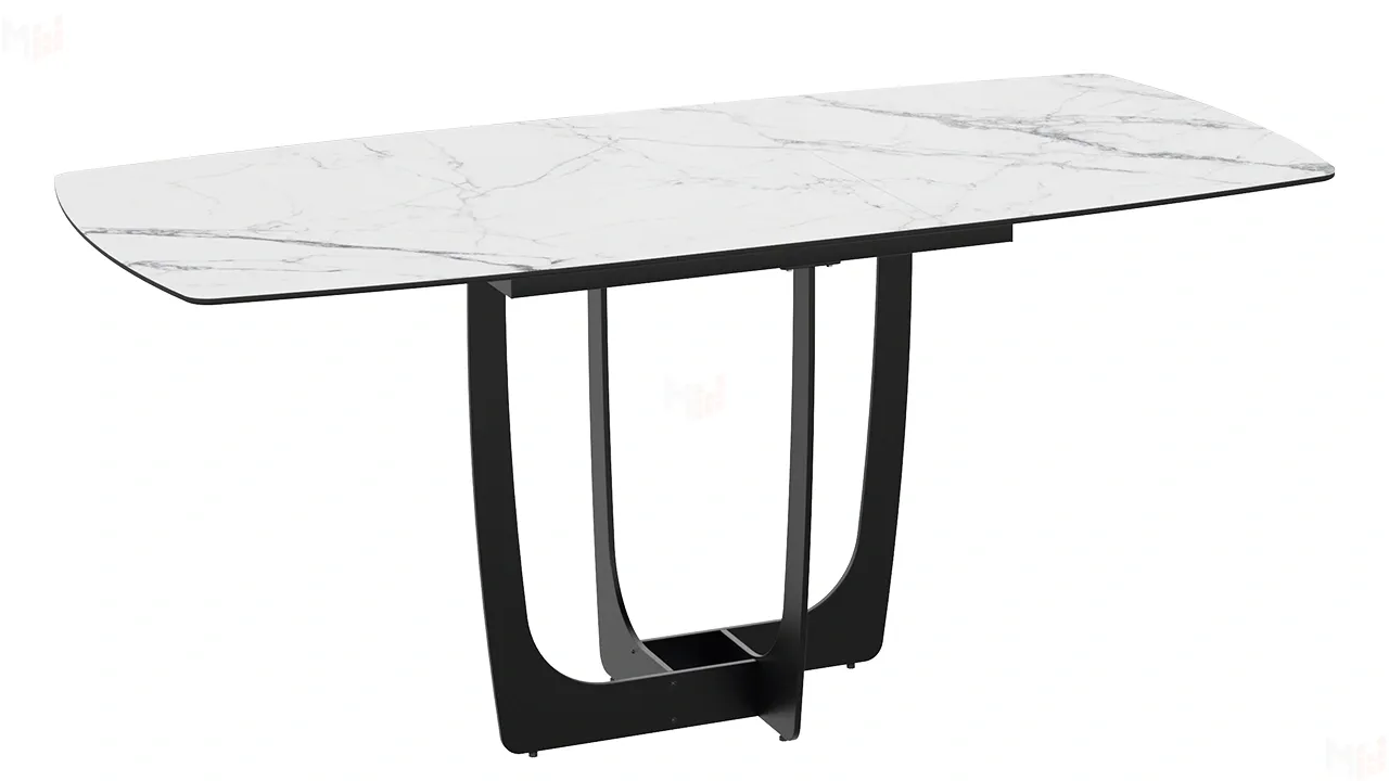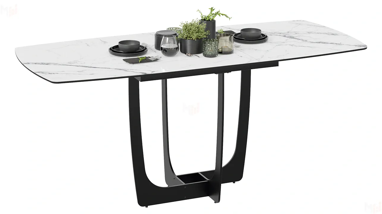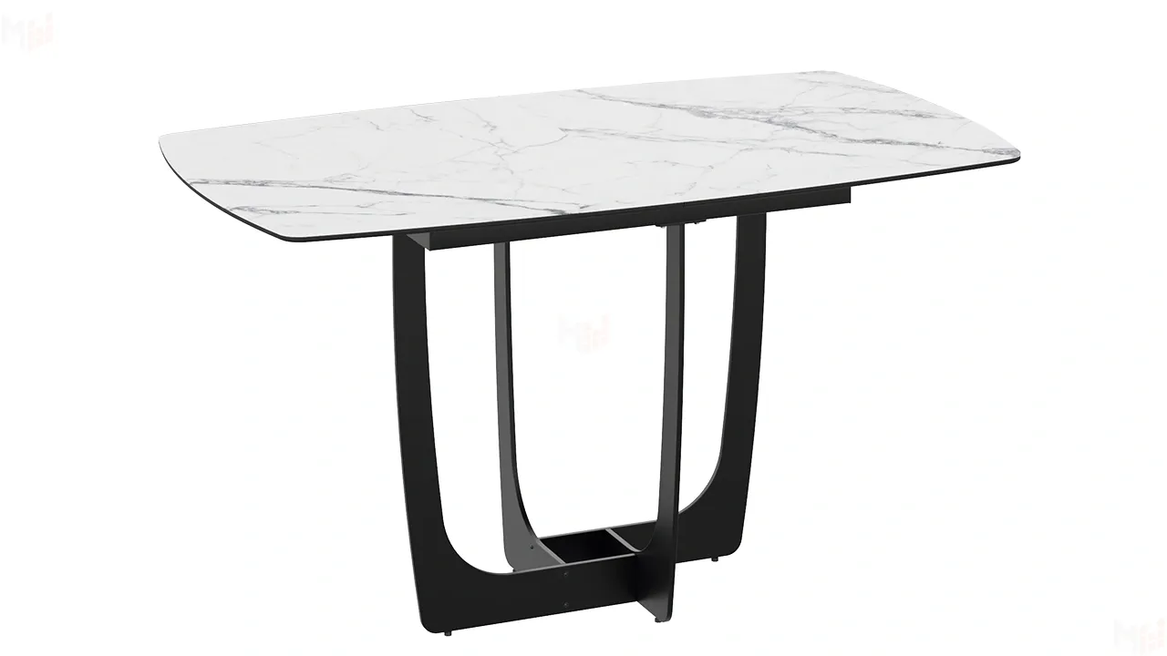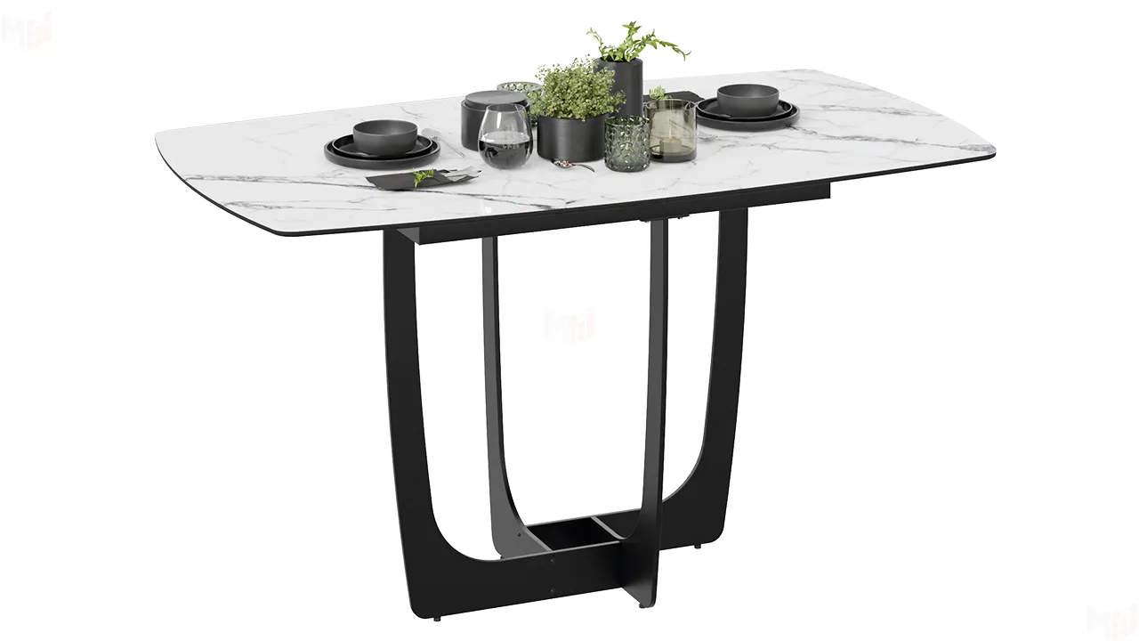 Стол обеденный Орфей Черный муар, Стекло глянцевое белый мрамор