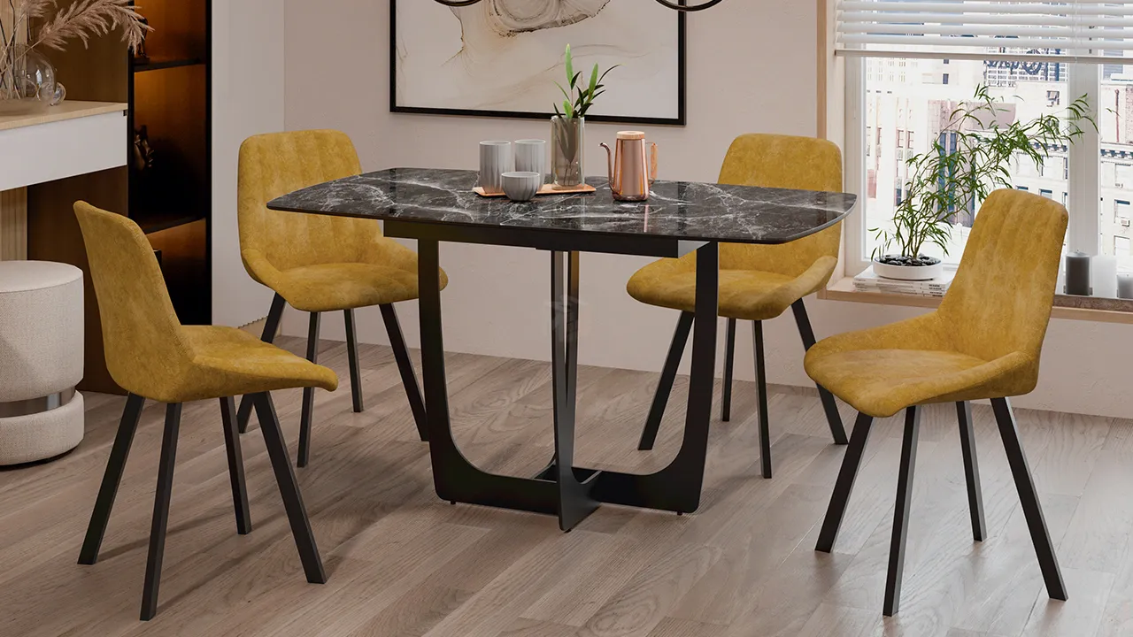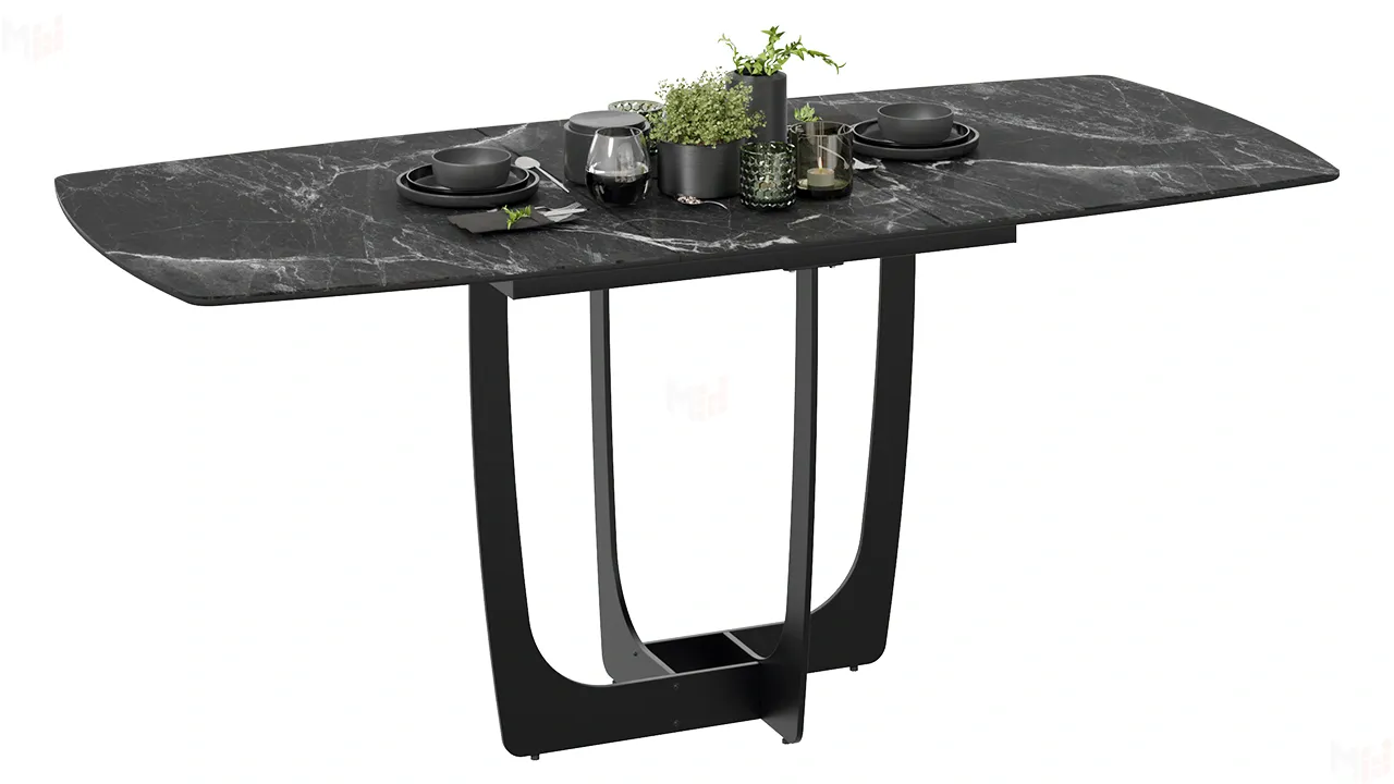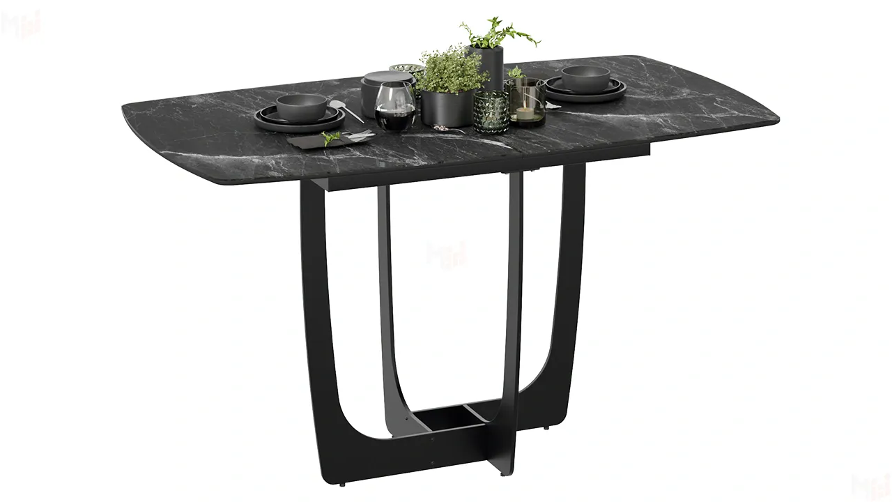 Стол обеденный Орфей Черный муар, Стекло глянцевое черный мрамор
