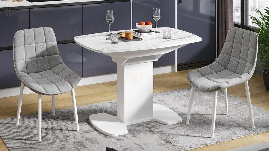 Стол обеденный Портофино - СМ(ТД)-105.01.11(1) Белый глянец, Стекло глянцевое белый мрамор