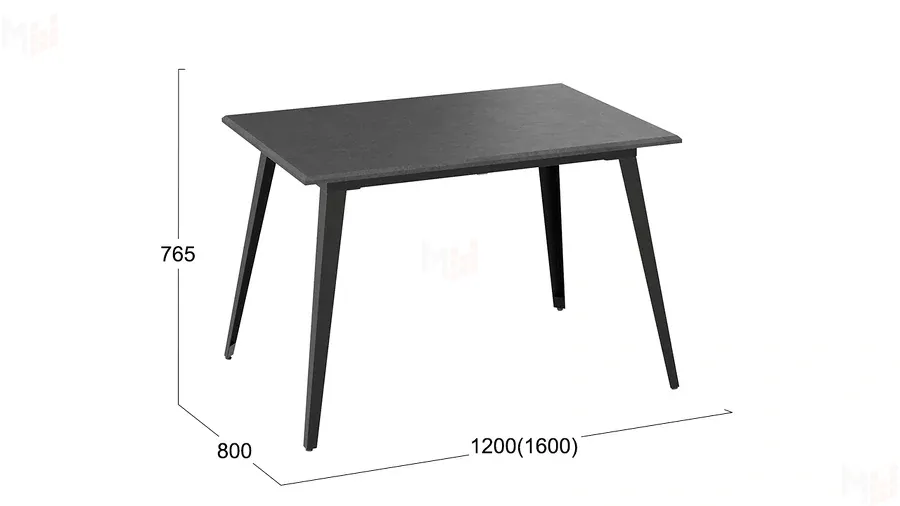 ширина 800 мм, длина 1200 мм, высота 765 мм