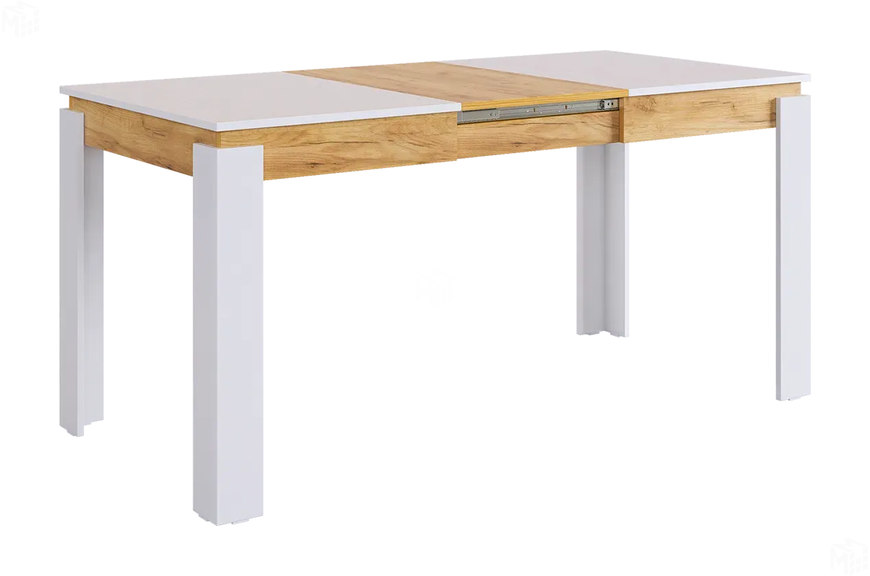Стол обеденный раздвижной Гермес 2 белое дерево/дуб крафт золотой