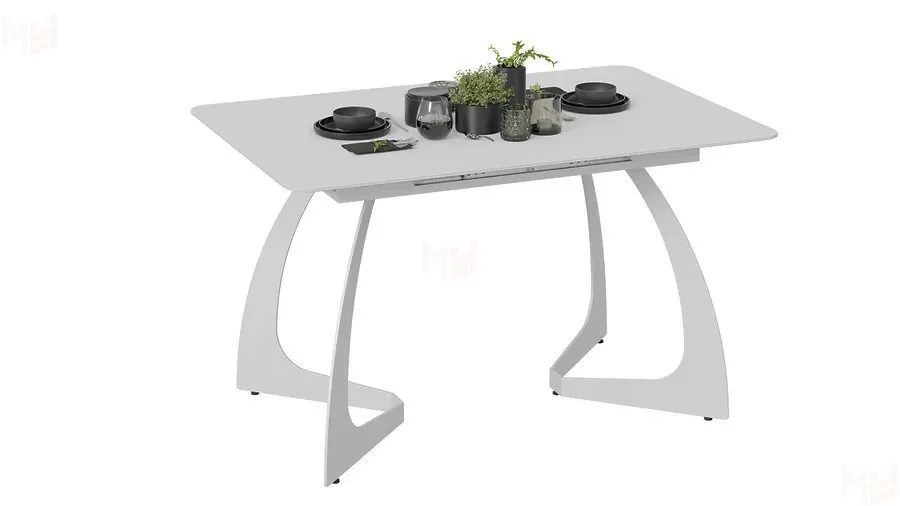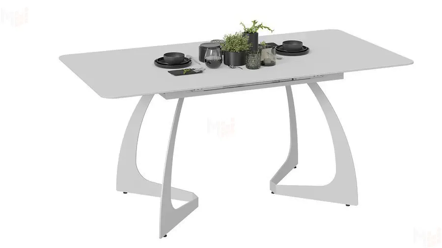 Стол обеденный раздвижной Конкорд Тип 2 Белый муар, Стекло матовое белое