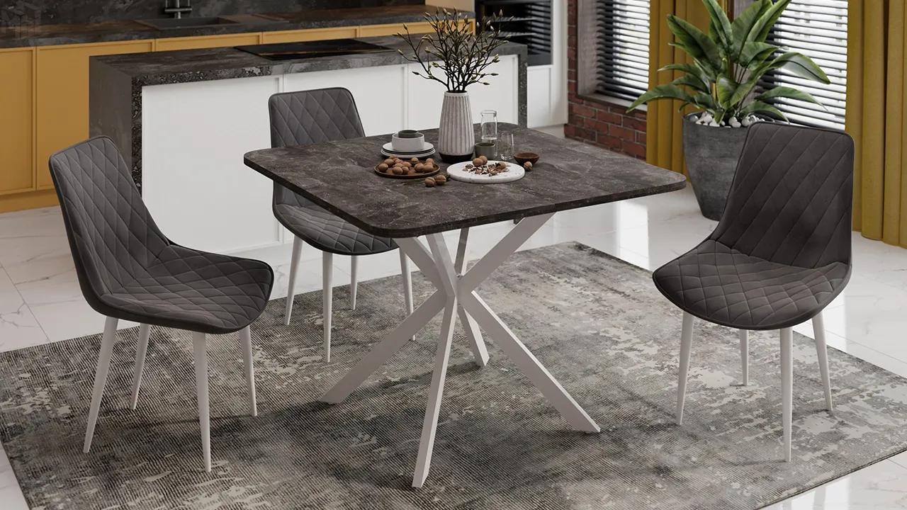 Стол обеденный раздвижной Лиссабон Тип 1 Белый муар, Ателье темный