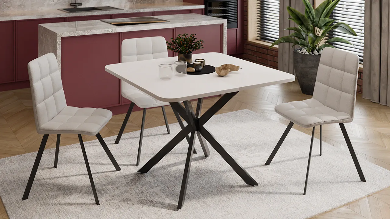 Стол обеденный раздвижной Лиссабон Тип 1 Черный муар, Белый