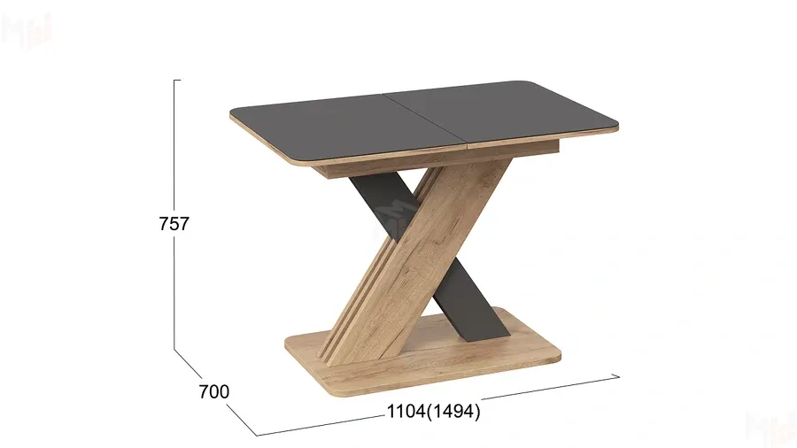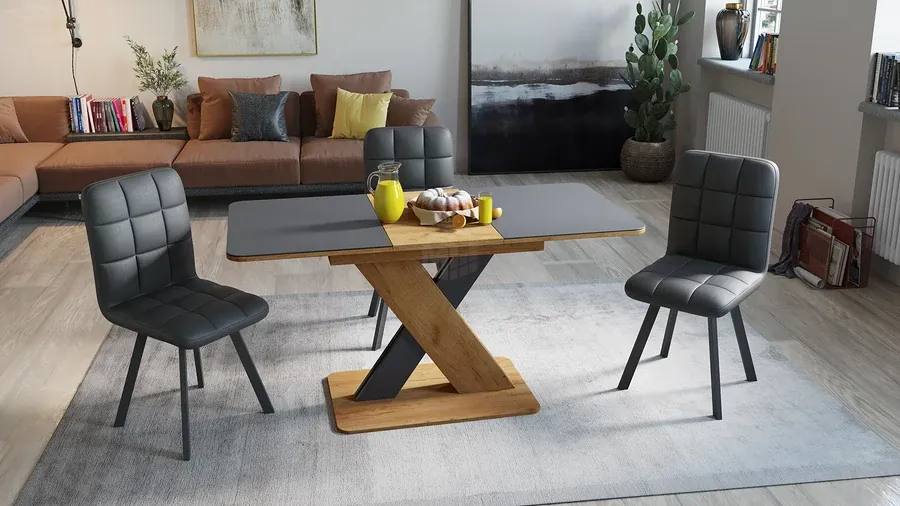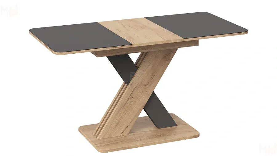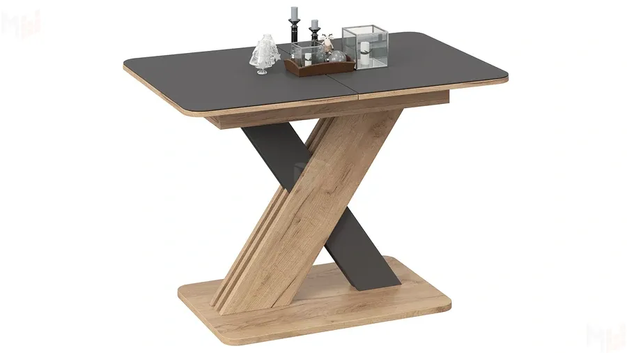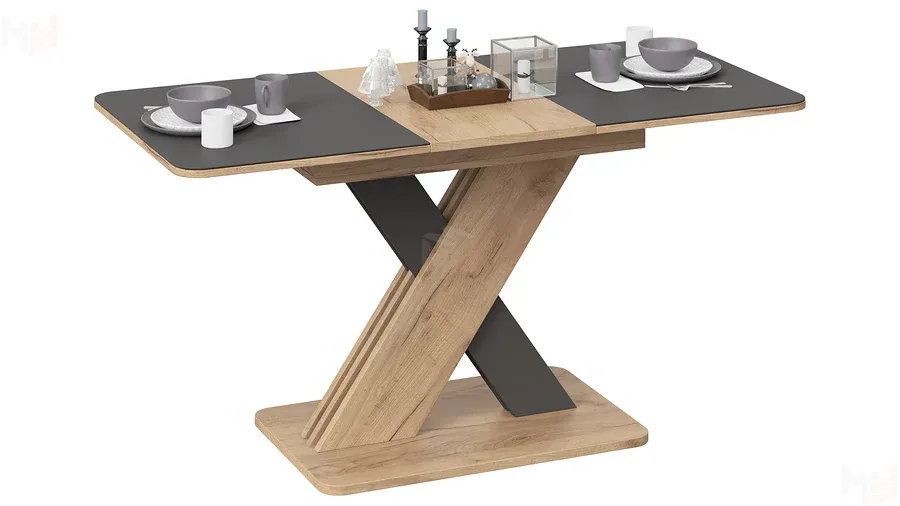 Стол обеденный раздвижной Люксембург Тип 1 Дуб Крафт золотой, Серый, Стекло серое матовое