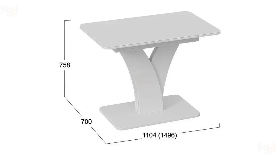 Стол обеденный раздвижной Люксембург Тип 2 Белый, Стекло белое матовое