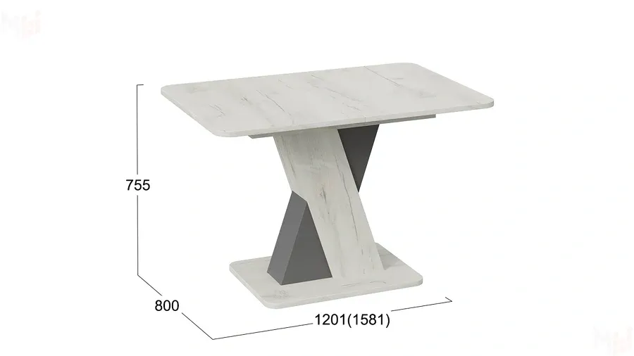 Стол обеденный раздвижной Люксембург Тип 3 Дуб крафт белый, Серый
