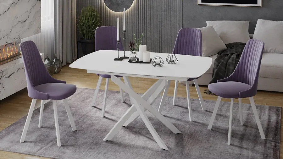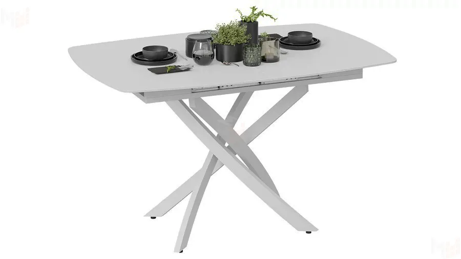 Стол обеденный раздвижной Манхеттен Т1 Белый муар, Стекло матовое белое