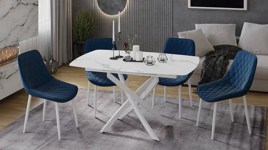 Стол обеденный раздвижной Манхеттен Т1 Белый муар, Стекло матовое белый мрамор