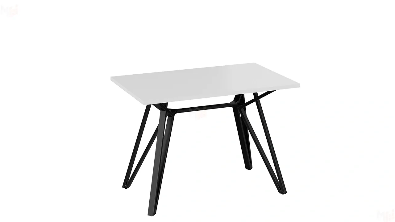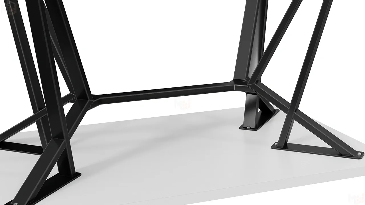 Столешница прямоугольной формы изготовлена из ЛДСП 22 мм с обработкой торцов кромкой ABS 2 мм. Опора нестандартной формы выполнена из металла, покрытого порошковой краской «Черный муар». Каждая ножка представляет собой элегантный треугольник, что добавляет геометрическую красоту и лаконичность в дизайн стола. Опора обеспечит стабильность и надежность конструкции.