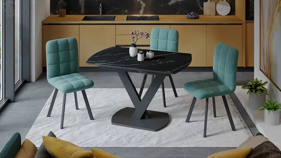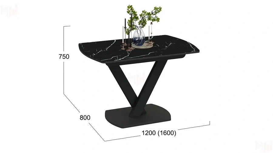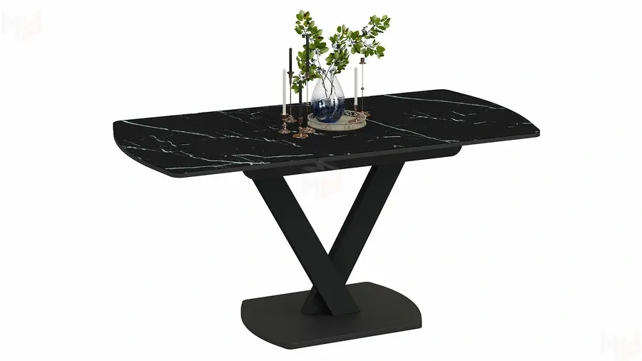 Стол обеденный Салерно Тип 1 Черный муар, Стекло черный мрамор