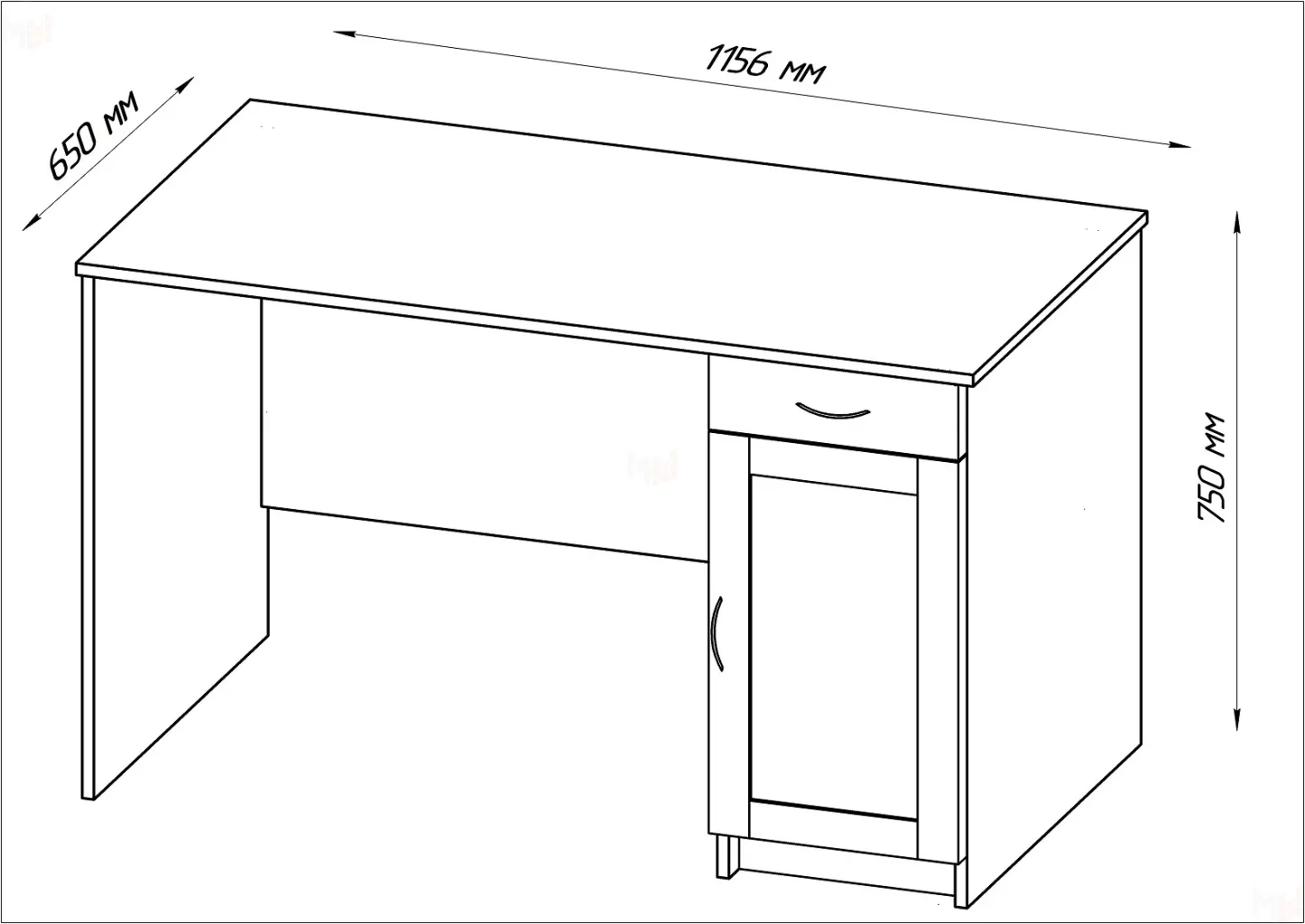 ширина 1156 мм, глубина 650 мм, высота 750 мм