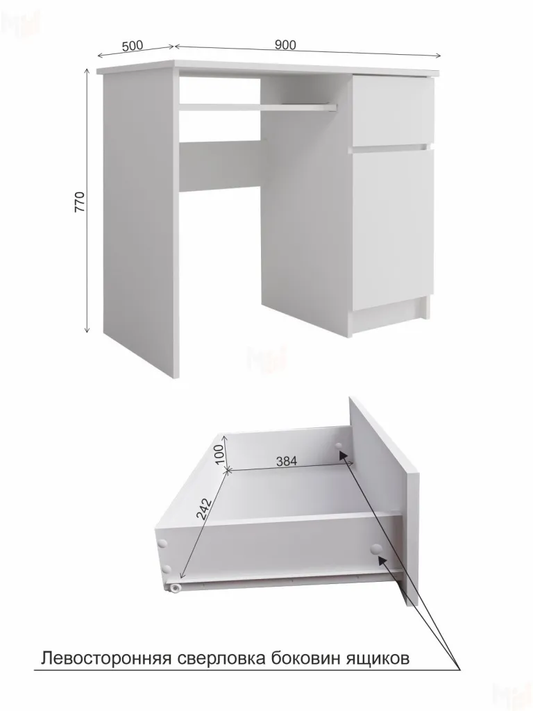 - материал фасада ящиков-ЛДСП белый -