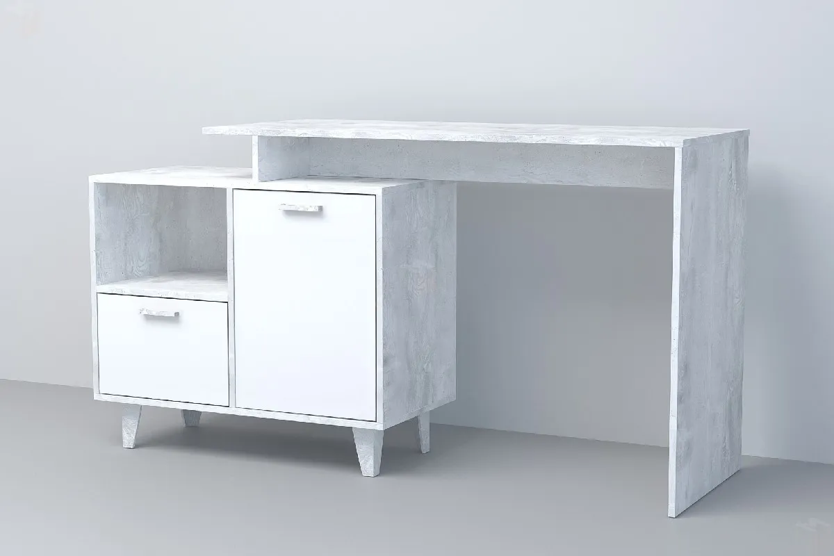 Стол Письменный СТ-2 на ножках Эго Бетон Светлый/Белый Глянец