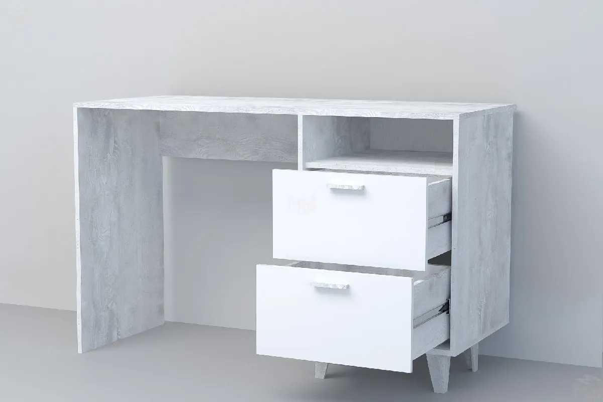 Стол Письменный СТ-3 на ножках Эго Бетон Светлый/Белый Глянец