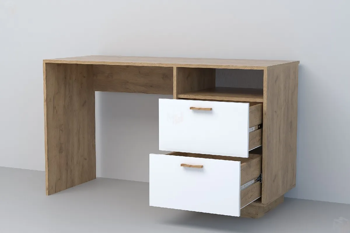 Стол оснащен открытой нишей и двумя выдвижными ящиками на шариковых направляющих полного выдвижения.