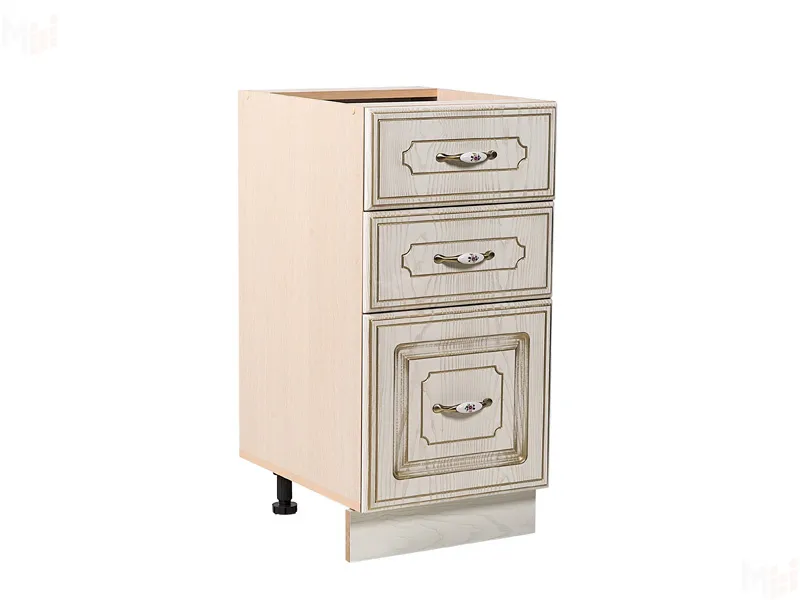 Стол рабочий с тремя выдвижными ящиками - один из необходимых на современной кухне. Небольшая ширина позволяет вписать его в любую, даже самую малогабаритную кухню. Удобные неглубокие ящики для мелочей и глубокий вместительный нижний ящик помогут удобно разместить множество предметов, так нужных на кухне.