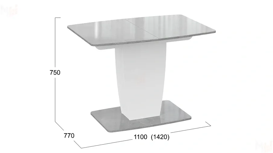 Стол раздвижной Аризона Тип 1 - КМ+02.85.000.001 Белый, Ателье светлый глянец