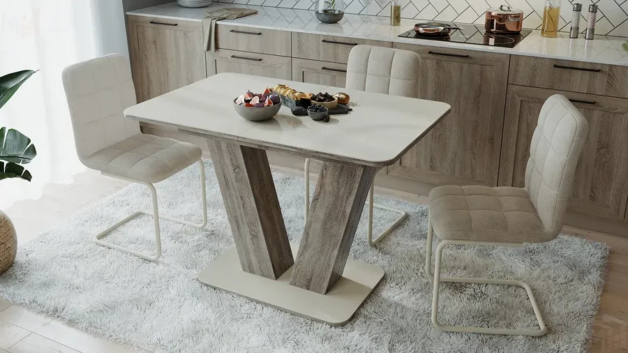 Стол раздвижной Чинзано Тип 1 Дуб Сонома трюфель, Стекло бежевое матовое