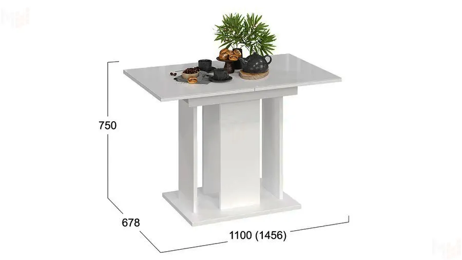 Стол обеденный раздвижной Бергамо Тип 1 Белый муар, Стекло матовое белый мрамор