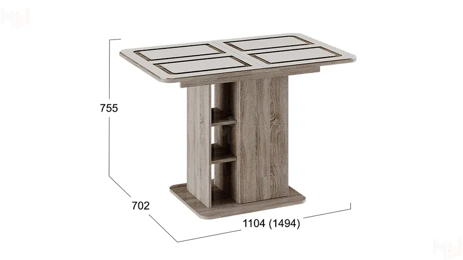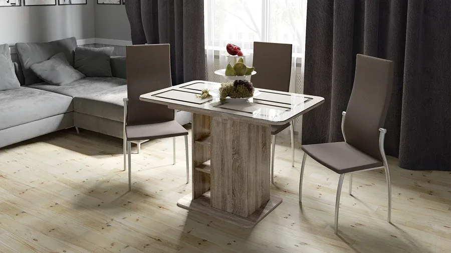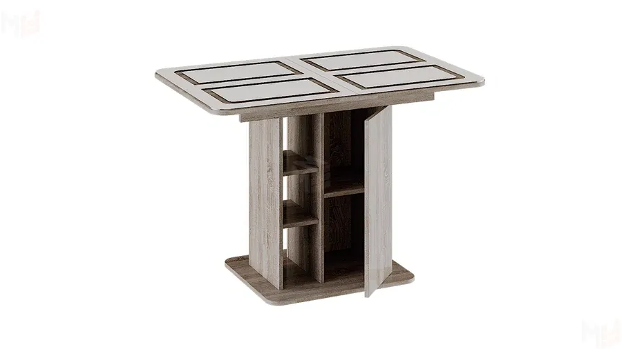 Стол раздвижной Мюнхен Тип 1 Дуб Сонома трюфель, Стекло бежевое с рисунком