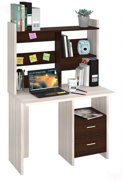 Компактный прямой компьютерный стол с надстройкой.