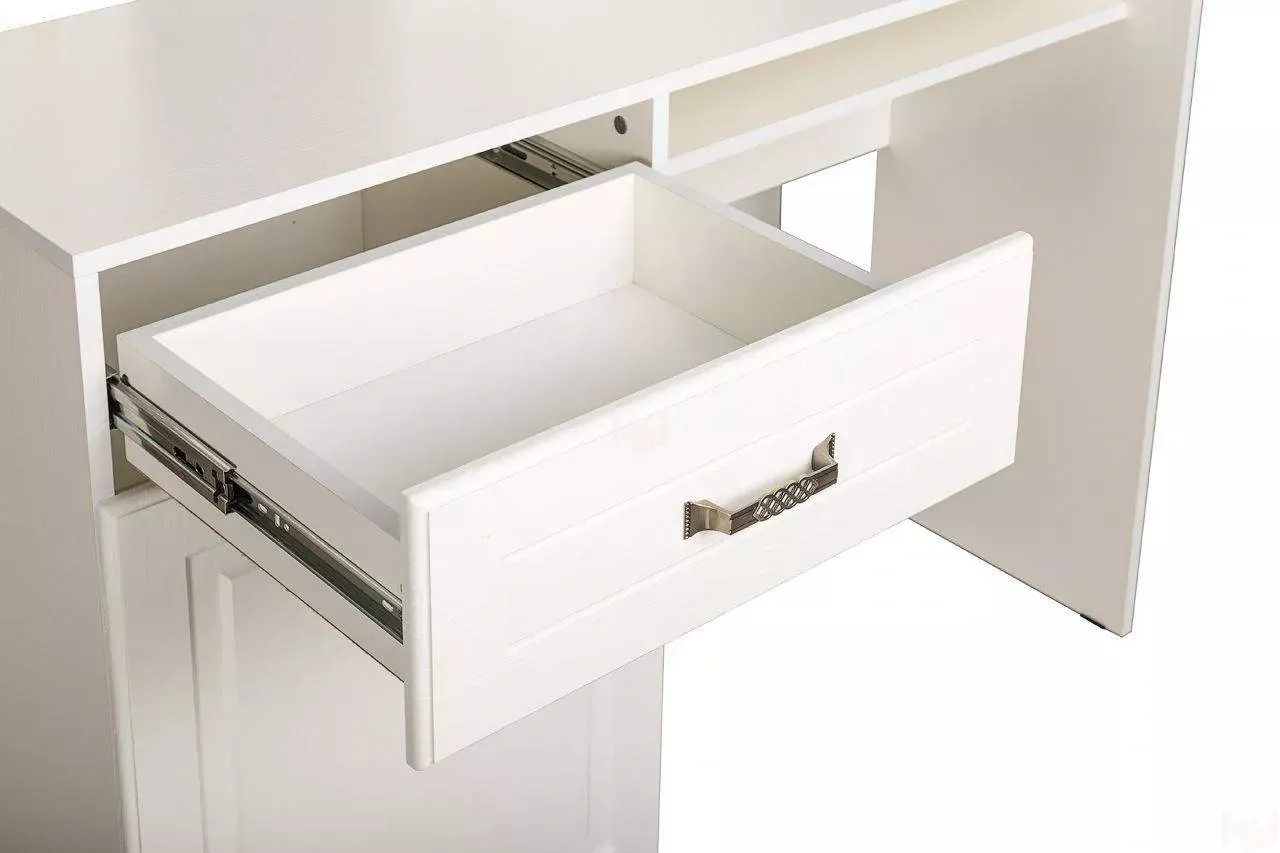 Стол туалетный Ливерпуль 12.46 поможет создать необычайно комфортное место, где вы сможете нанести макияж, создать безупречную прическу или заняться маникюром. Тумба с глухой дверцей и полками внутри, а также выдвижной ящик пригодятся для хранения косметики, украшений и различных аксессуаров. Достаточно широкая столешница позволит разместить огромное количество разнообразных флаконов, тюбиков и баночек. -
