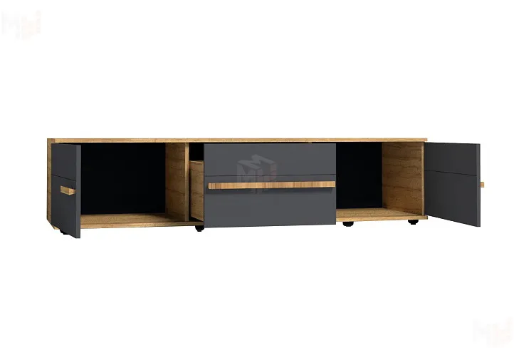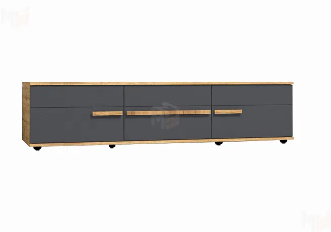 В гостиной CROWN длинная 3 Тумба ТВ может выступать как отдельный функциональный элемент, так и быть центром компоновки. Вмещает телевизор с диагональю до 60''. Две боковые ниши со сборными фасадами и центральный выдвижной ящик на шариковых направляющих - функциональное место для хранения. Все фасады коллекции облицованы ударопрочной кромкой ПВХ толщиной 2 мм.