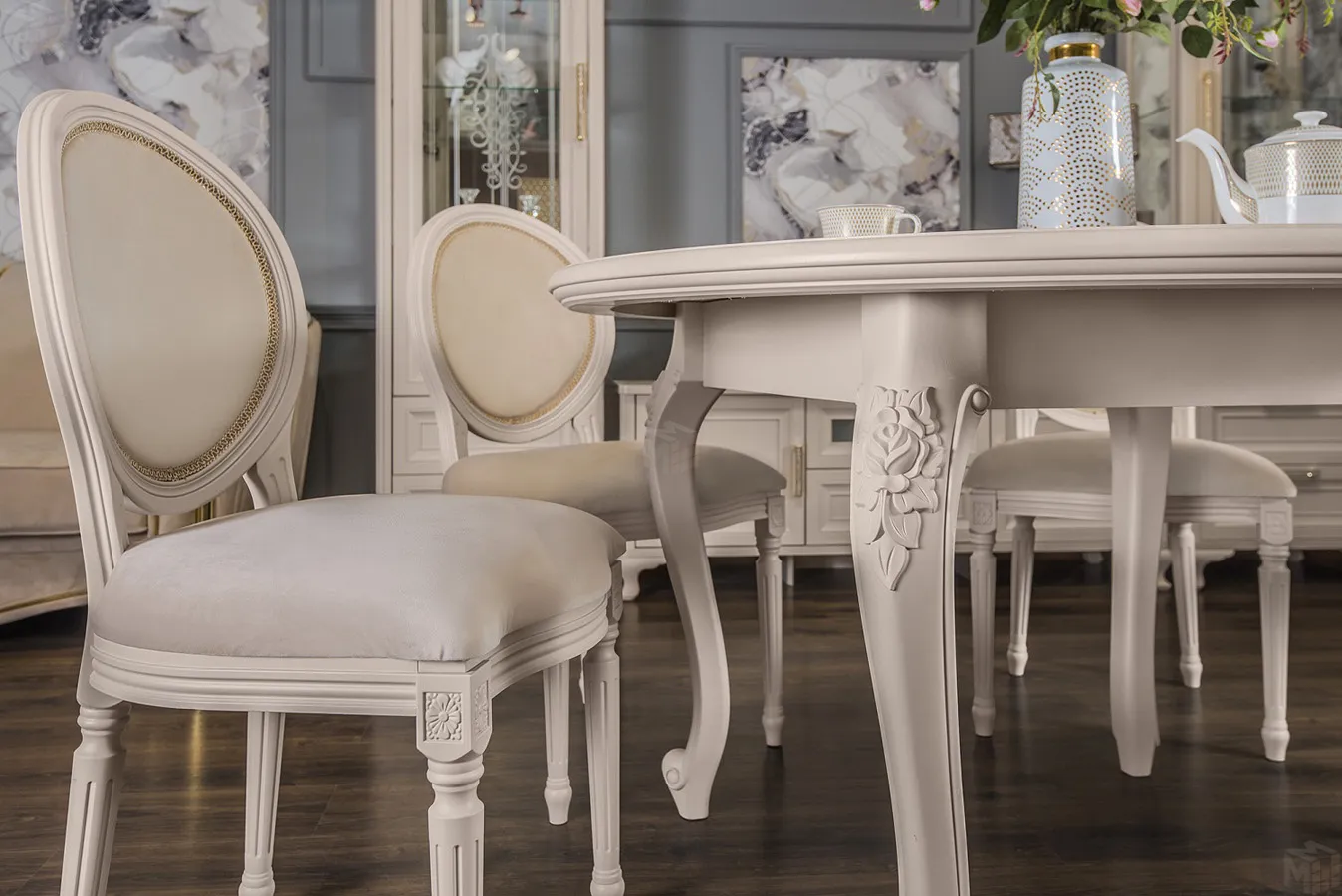 Обеденная группа тип 1 - МФ-101.006 Белый, Дуб Крафт золотой, Иск.замша Latte