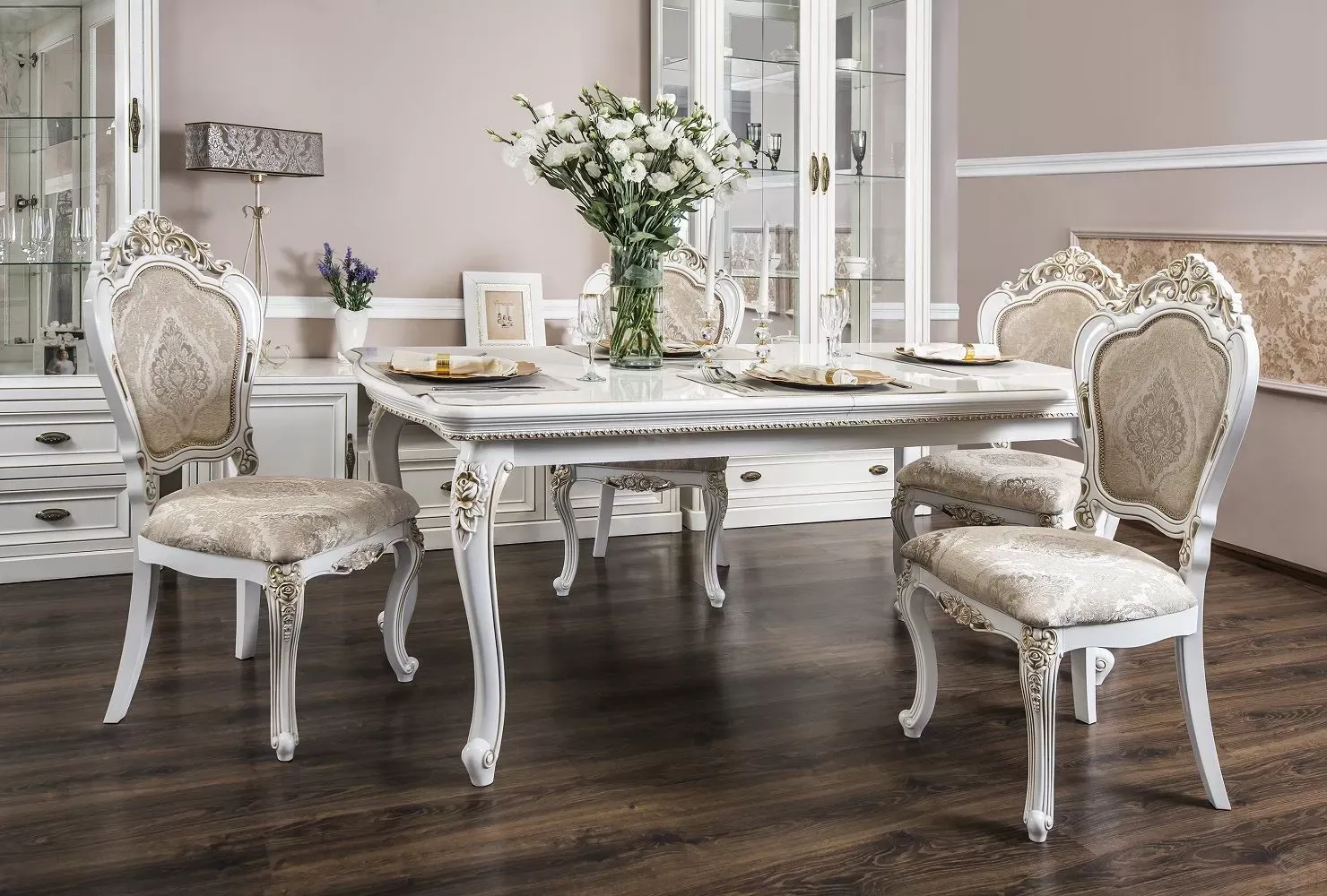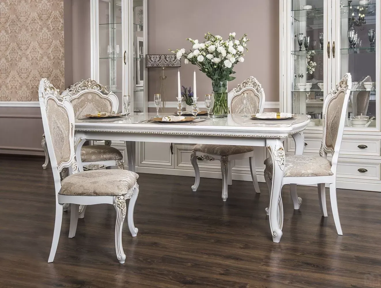 Столовая Натали белый глянец (прямоугольный стол)