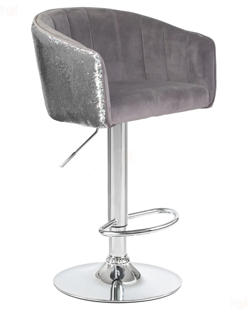 цвет сиденья серый велюр с серебряными пайетками, цвет основания хромцвет сиденья серый велюр с серебряными пайетками, цвет основания хромМатериал каркаса