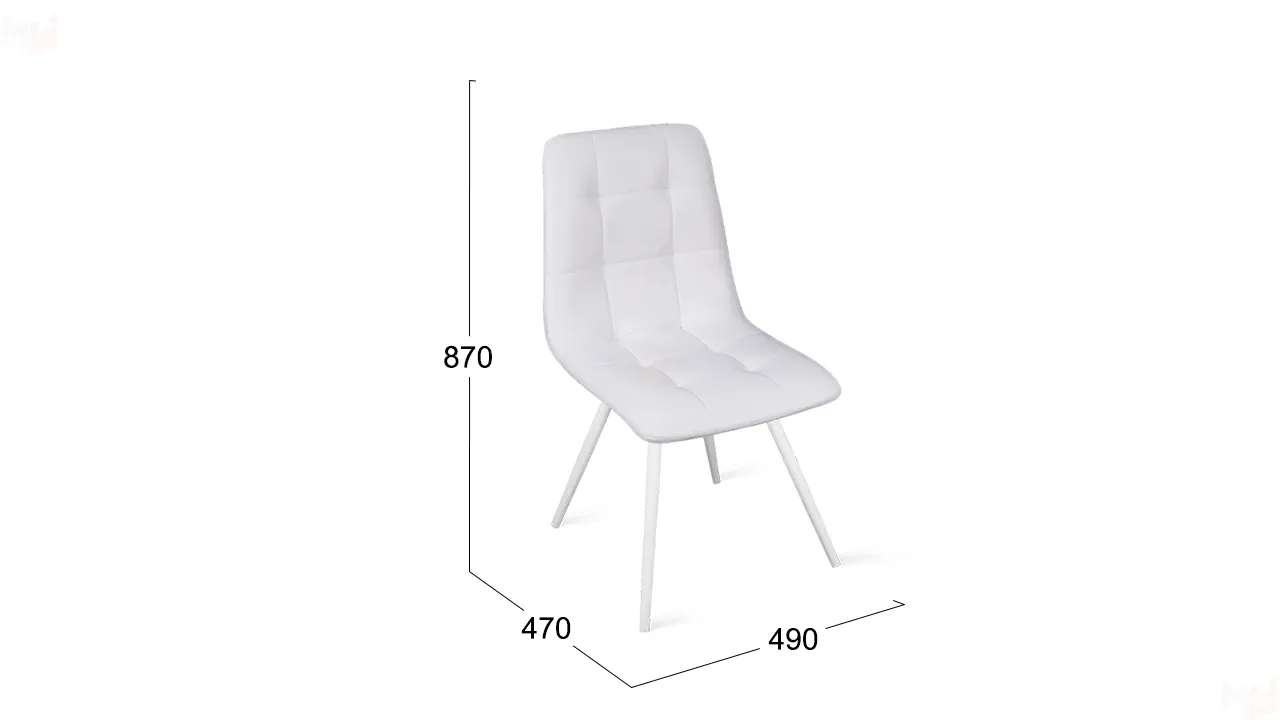 Обивка изготовлена из кожзама, что придает стулу привлекательный внешний вид. Это современный полиуретановый материал, очень схожий по фактуре и внешнему виду с натуральной кожей. Отстрочка на мягком элементе в виде квадратов — это именно то, что нужно для создания стильного интерьера. Металлические ножки с порошковым покрытием обеспечивают надежную опору модели. Они расставлены под углом, что гарантирует максимальную устойчивость конструкции.