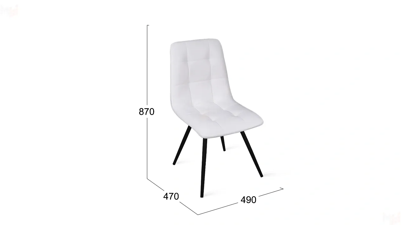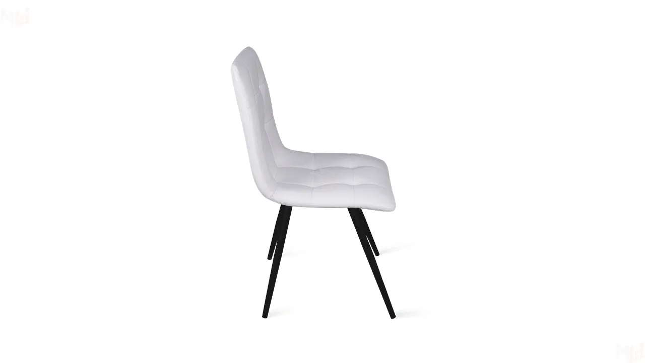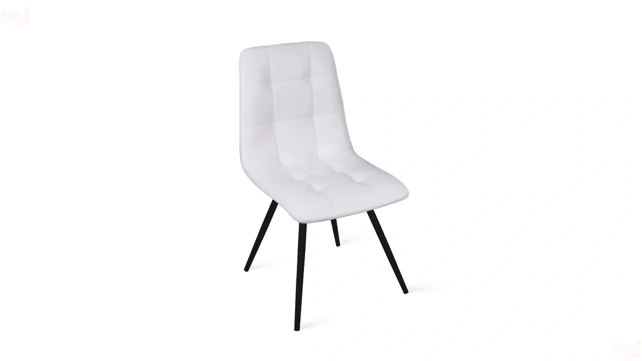 Обивка изготовлена из кожзама, что придает стулу привлекательный внешний вид. Это современный полиуретановый материал, очень схожий по фактуре и внешнему виду с натуральной кожей. Отстрочка на мягком элементе в виде квадратов — это именно то, что нужно для создания стильного интерьера. Металлические ножки с порошковым покрытием обеспечивают надежную опору модели. Они расставлены под углом, что гарантирует максимальную устойчивость конструкции.