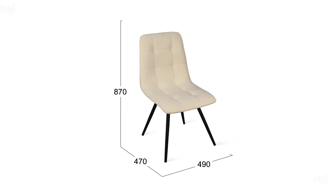 Обивка изготовлена из кожзама, что придает стулу привлекательный внешний вид. Это современный полиуретановый материал, очень схожий по фактуре и внешнему виду с натуральной кожей. Отстрочка на мягком элементе в виде квадратов — это именно то, что нужно для создания стильного интерьера. Металлические ножки с порошковым покрытием обеспечивают надежную опору модели. Они расставлены под углом, что гарантирует максимальную устойчивость конструкции.