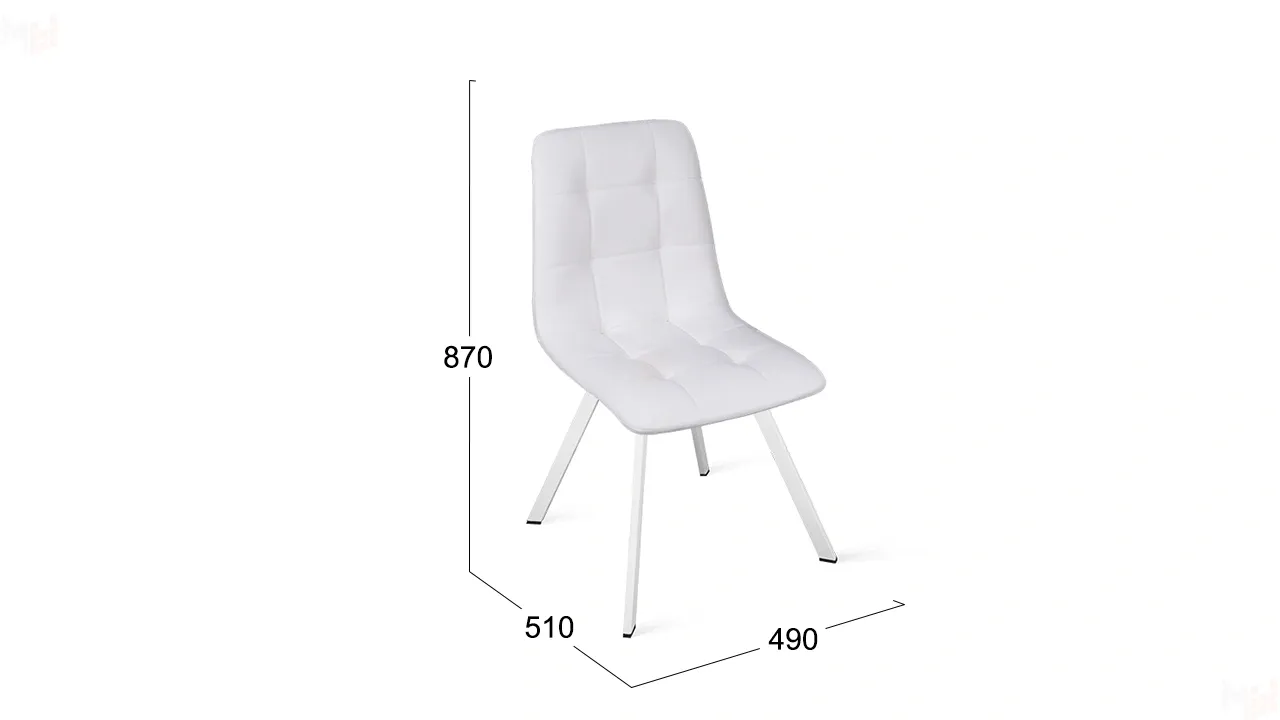 Обивка изготовлена из кожзама, что придает стулу привлекательный внешний вид. Это современный полиуретановый материал, очень схожий по фактуре и внешнему виду с натуральной кожей. Отстрочка на мягком элементе в виде квадратов — это именно то, что нужно для создания стильного интерьера. Металлические ножки с порошковым покрытием обеспечивают надежную опору модели. Они расставлены под углом, что гарантирует максимальную устойчивость конструкции.