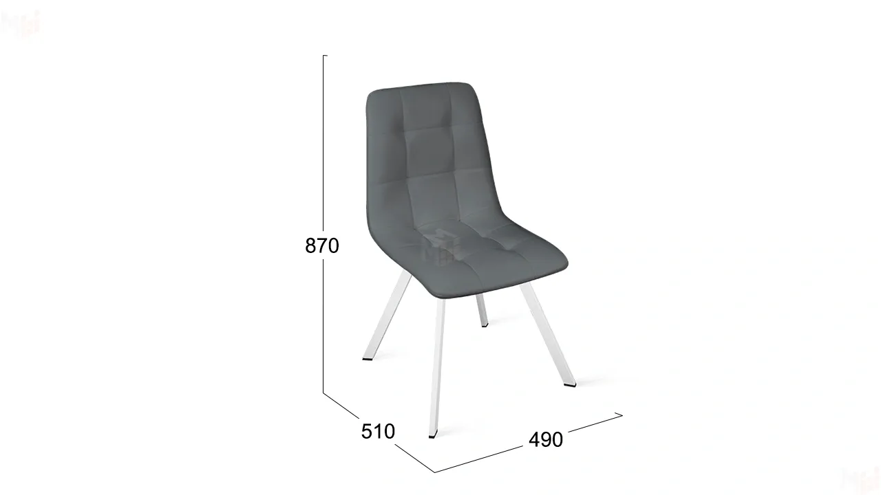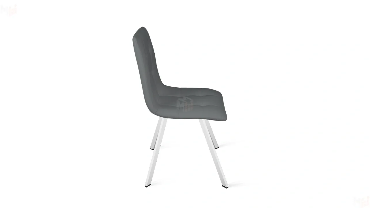 Обивка изготовлена из кожзама, что придает стулу привлекательный внешний вид. Это современный полиуретановый материал, очень схожий по фактуре и внешнему виду с натуральной кожей. Отстрочка на мягком элементе в виде квадратов — это именно то, что нужно для создания стильного интерьера. Металлические ножки с порошковым покрытием обеспечивают надежную опору модели. Они расставлены под углом, что гарантирует максимальную устойчивость конструкции.