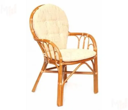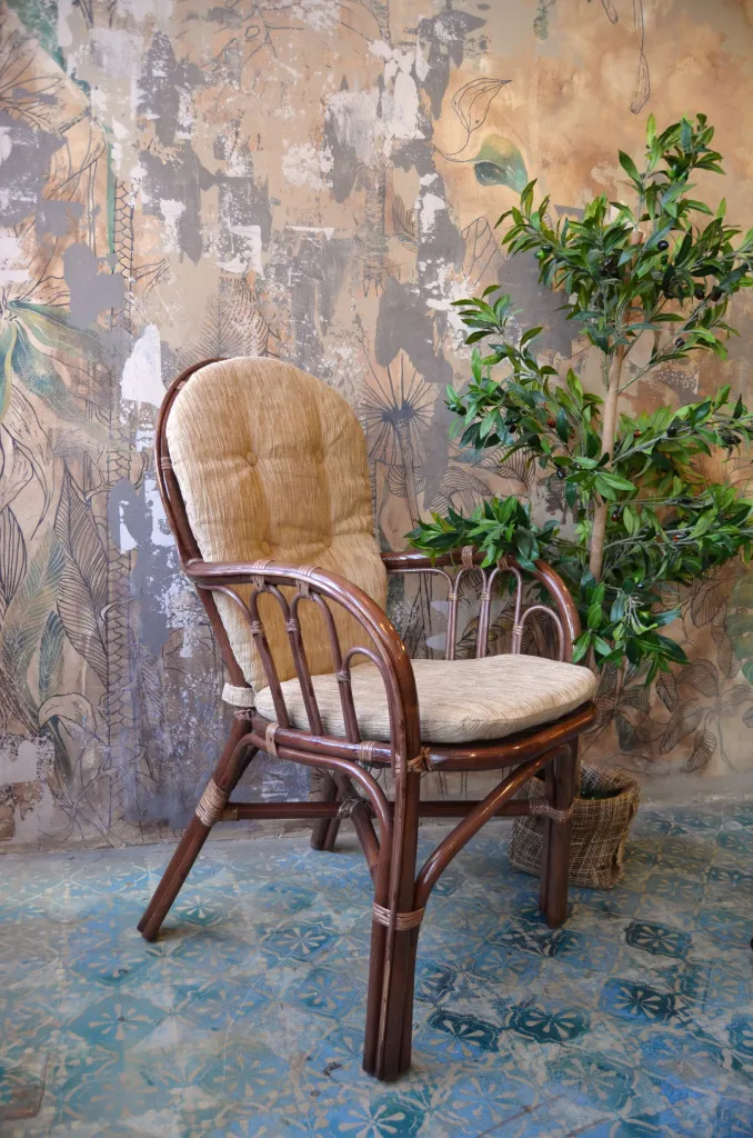 Стул из натурального ротанга с большой съемной подушкой и удобной высокой спинкой.