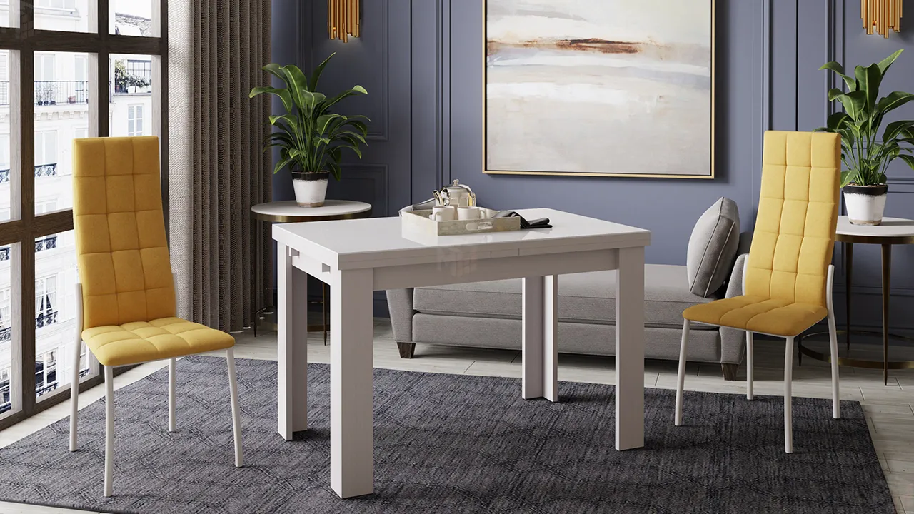 Стул Кредо Белый муар, Микровелюр Боска 09 Горчичный