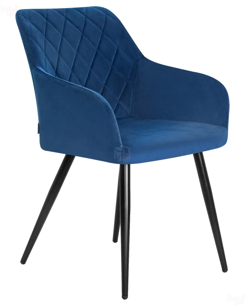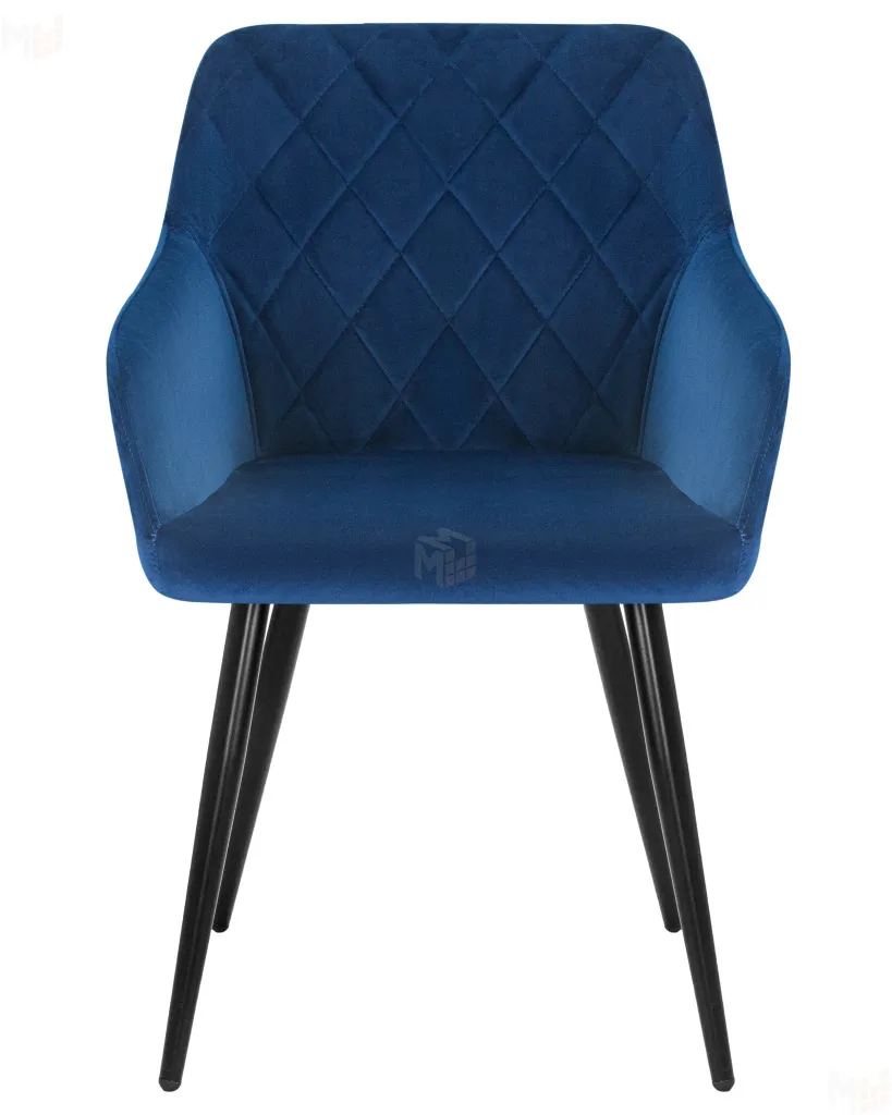 Стальные ножки черного матового цвета, ткань велюр темно-синий.