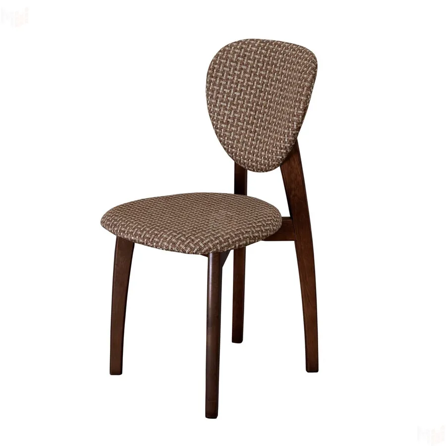 Каркас стула выполнен из массива дерева. Сиденье покрыто мягким слоем наполнителя и обшито текстилем, удобная спинка необычной круглой формы.