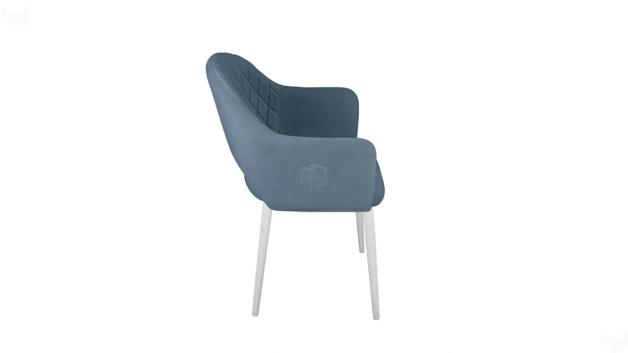 Модель с сиденьем и спинкой, плавно переходящей в подлокотники, дополнена велюровой обивкой со стежкой в форме небольших ромбов