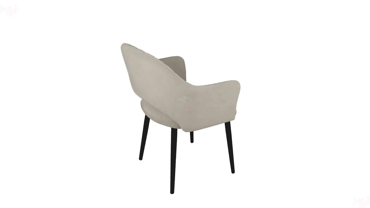 Модель с сиденьем и спинкой, плавно переходящей в подлокотники, дополнена велюровой обивкой со стежкой в форме небольших ромбов
