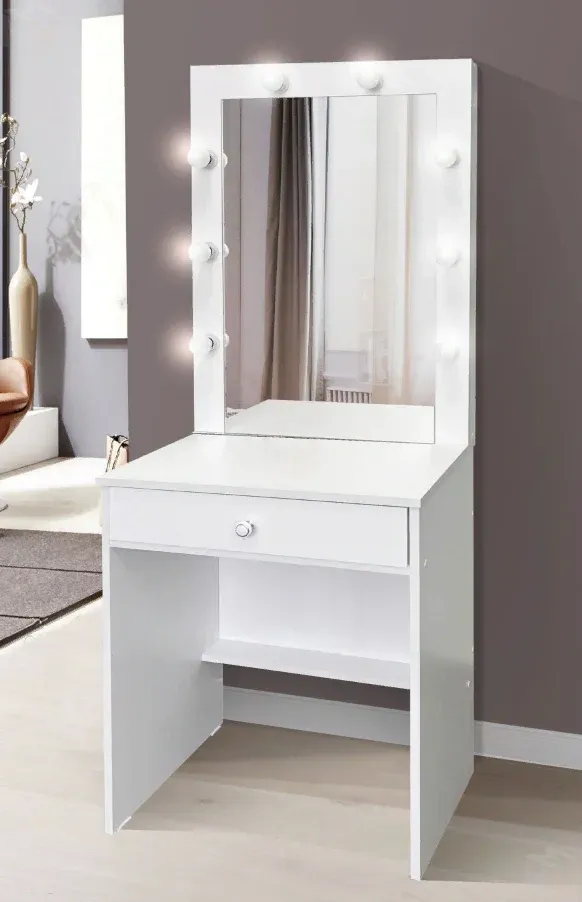 Изготовлен из ЛДСП 16 мм. Ящики выдвигаются с помощью направляющих полного выдвижения. Цвет белый. Рассчитан на 8 лампочек.