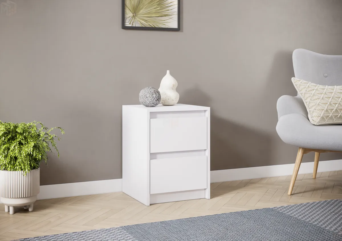 Лицевая фурнитура на тумбе отсутствует. Ящики открываются с помощью захвата рукой.