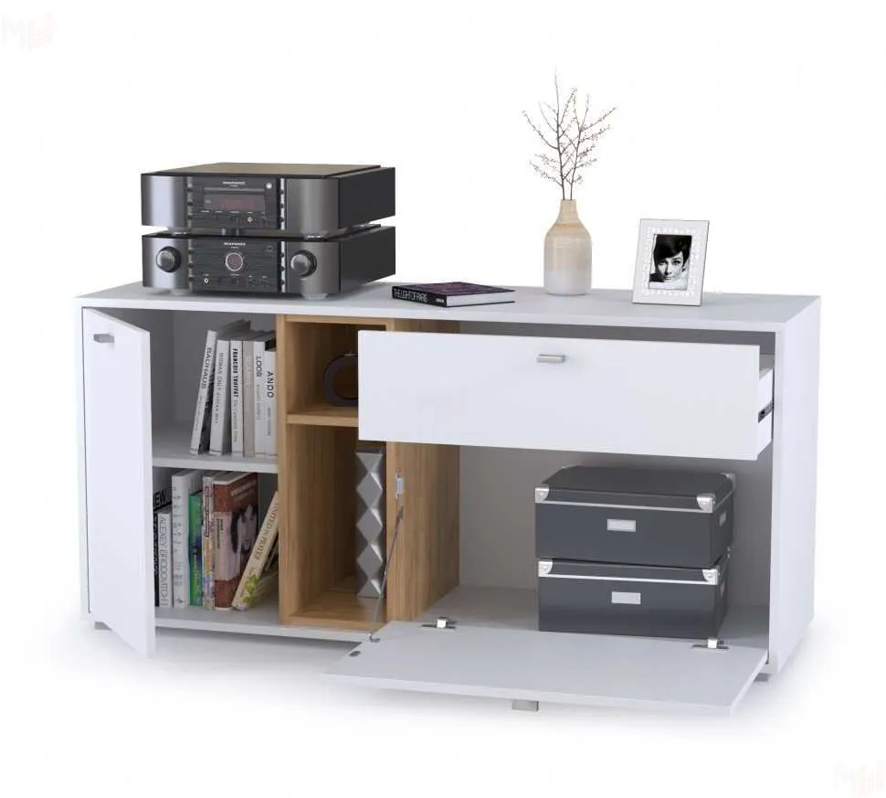 Тумба Бэль 10.91 будет отличным дополнением интерьера любой комнаты. Изделие можно использовать в качестве подставки под телевизор или разместить сверху интересные и увлекательные книги, семейные фотографии, коллекции интересных предметов, оригинальные сувениры, статуэтки и детские поделки. Выдвижной ящик и отделения, скрытые за дверцами, пригодятся для хранения всех необходимых предметов.