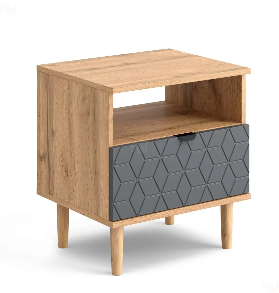 Прикроватная тумба с выдвижным ящиком имеет достаточно места для хранения различных предметов, таких как книги, журналы, зарядные устройства.