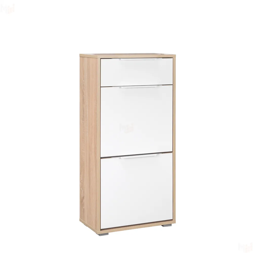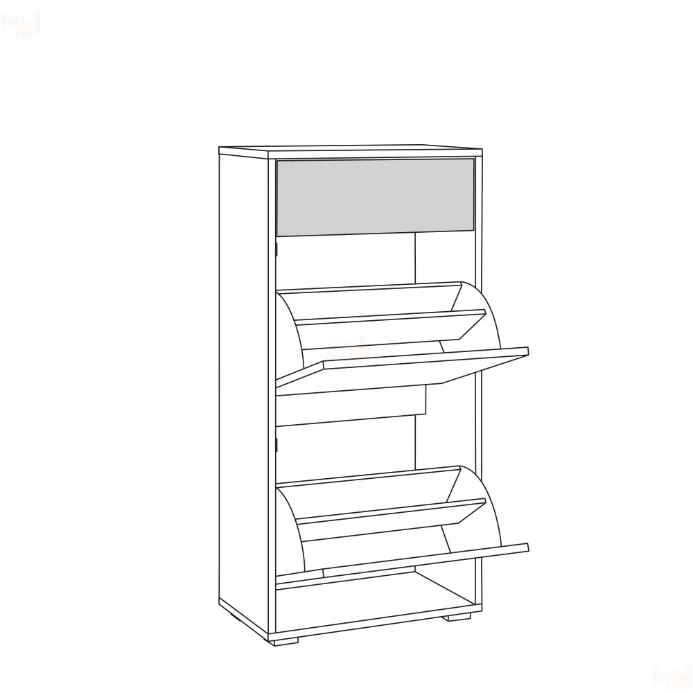 Верхний ящик - выдвижной. Два нижних - откидные для обуви.