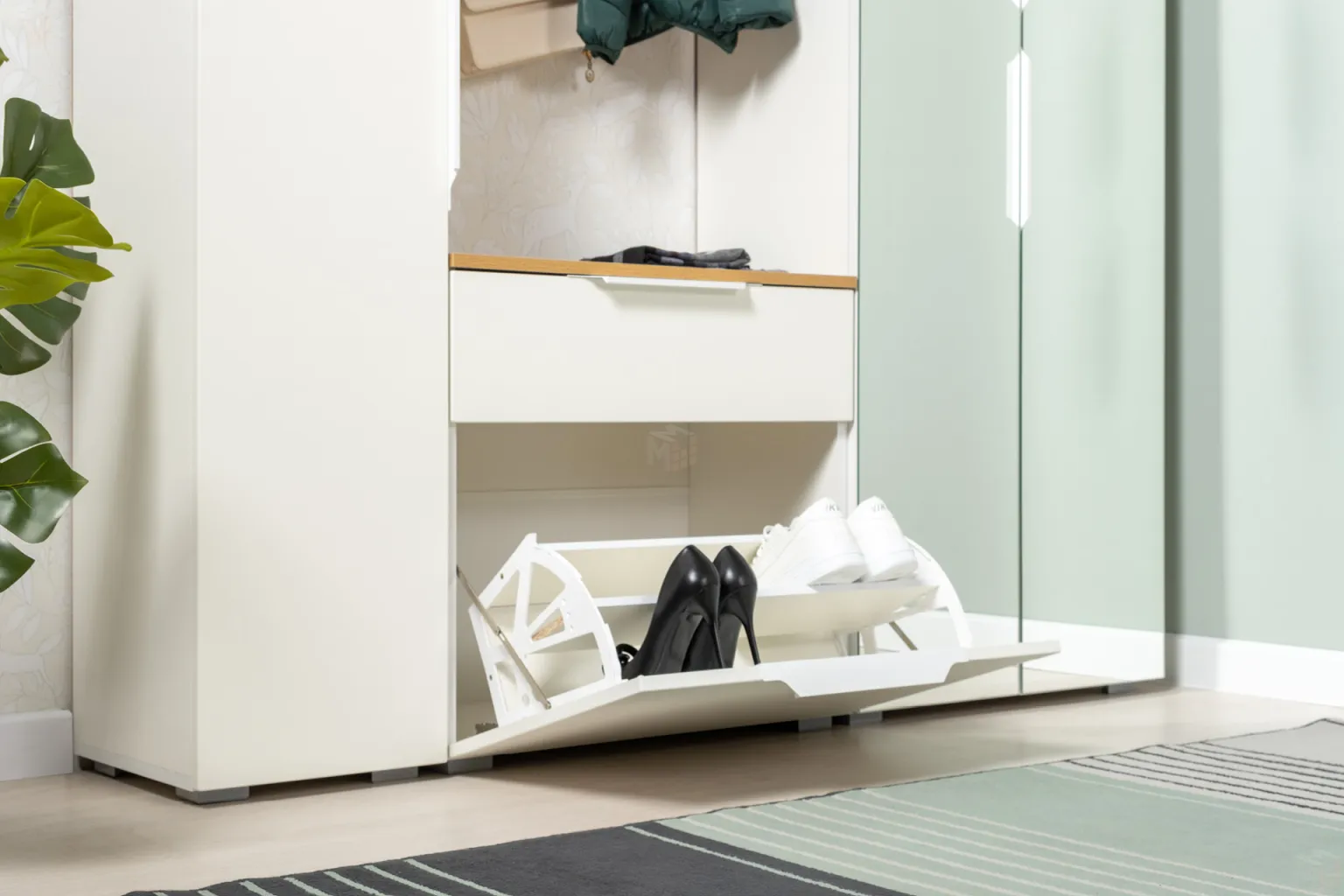 Тумба для обуви 16.127 Октава стильная и практичная модель. Имеет выдвижной ящик и откидное отделение. -