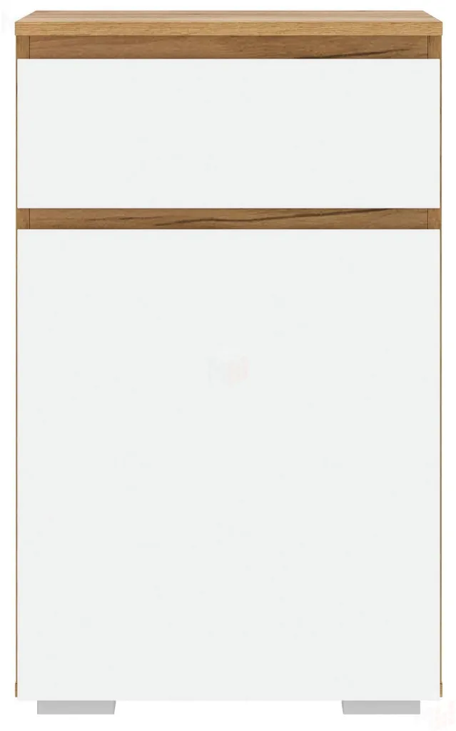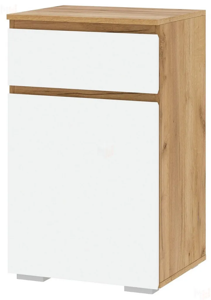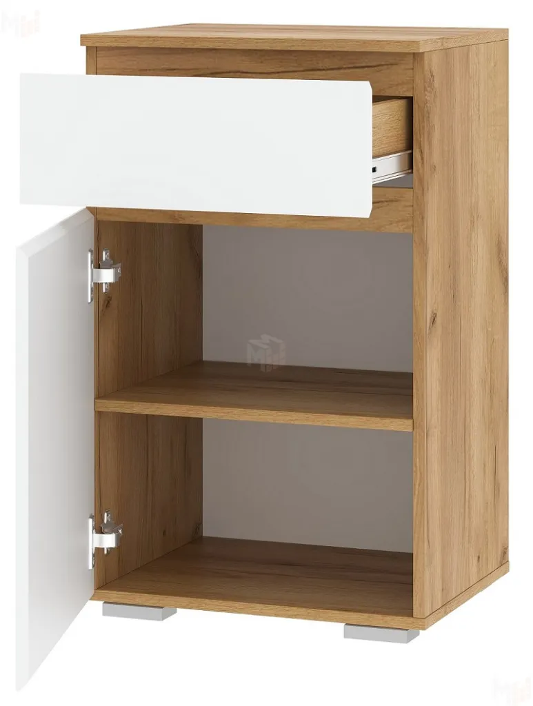 Тумба 1С1Я ГРЕТТА 1-створчатая с полкой, с ящиком на направляющих полного выдвижения. Применение интегрированной ручки на фасадах делает модель стильной и безопасной – дверцы открываются за профилированные выступы. Фасады обработаны кромкой 1 мм. Черная регулируемая ножка-опора.
